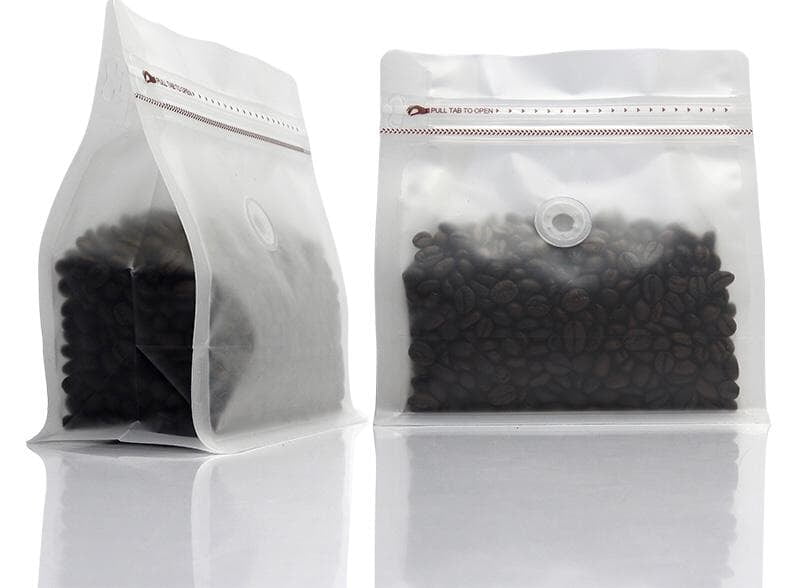 Bolsa para Cafe Ancha 1lb con Ziplock y Filtro Blanca IVT